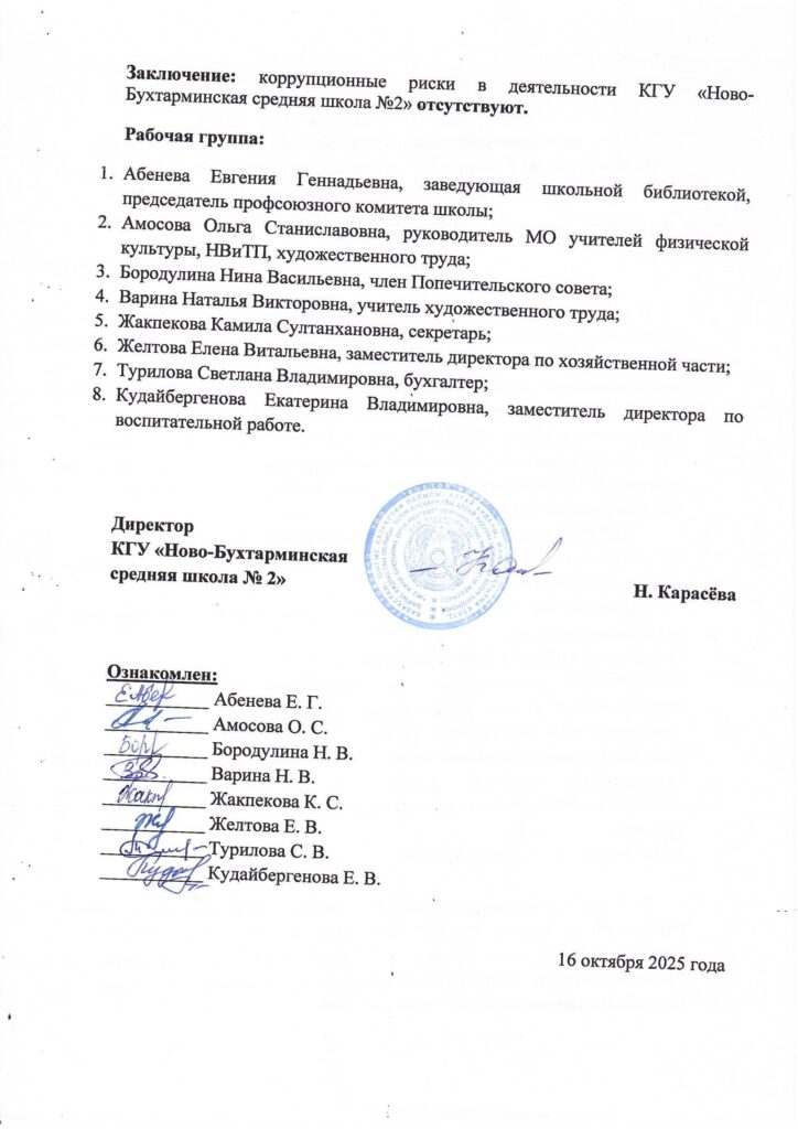 Акт проверки школьной столовой